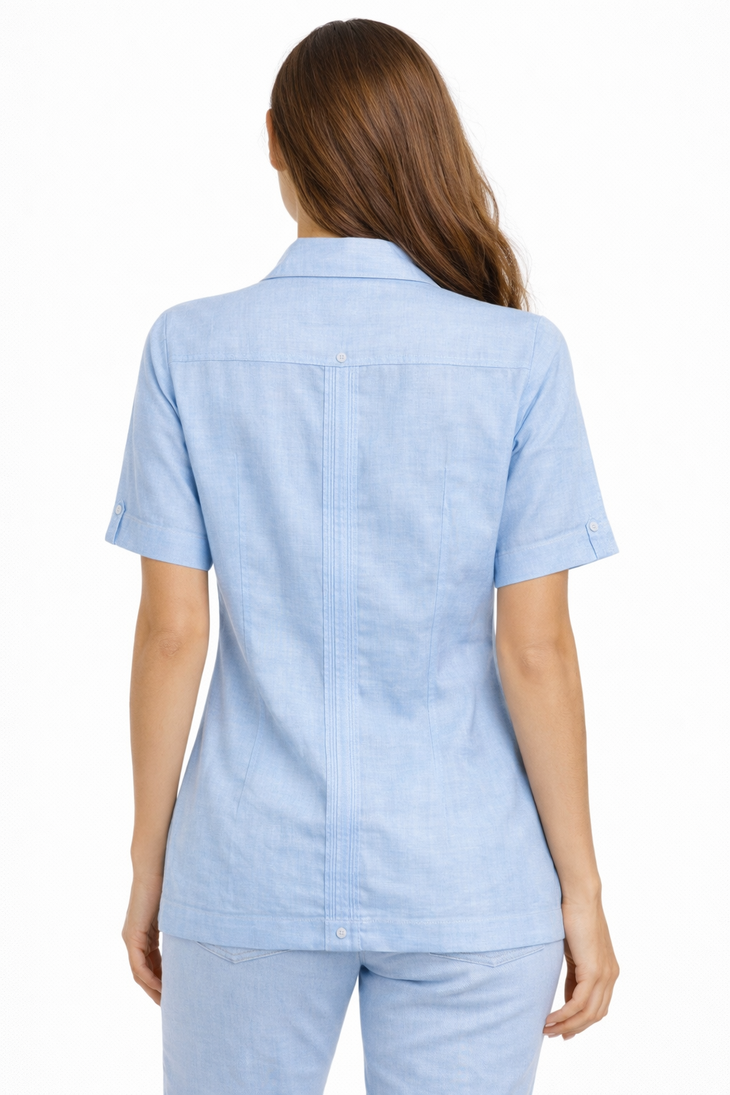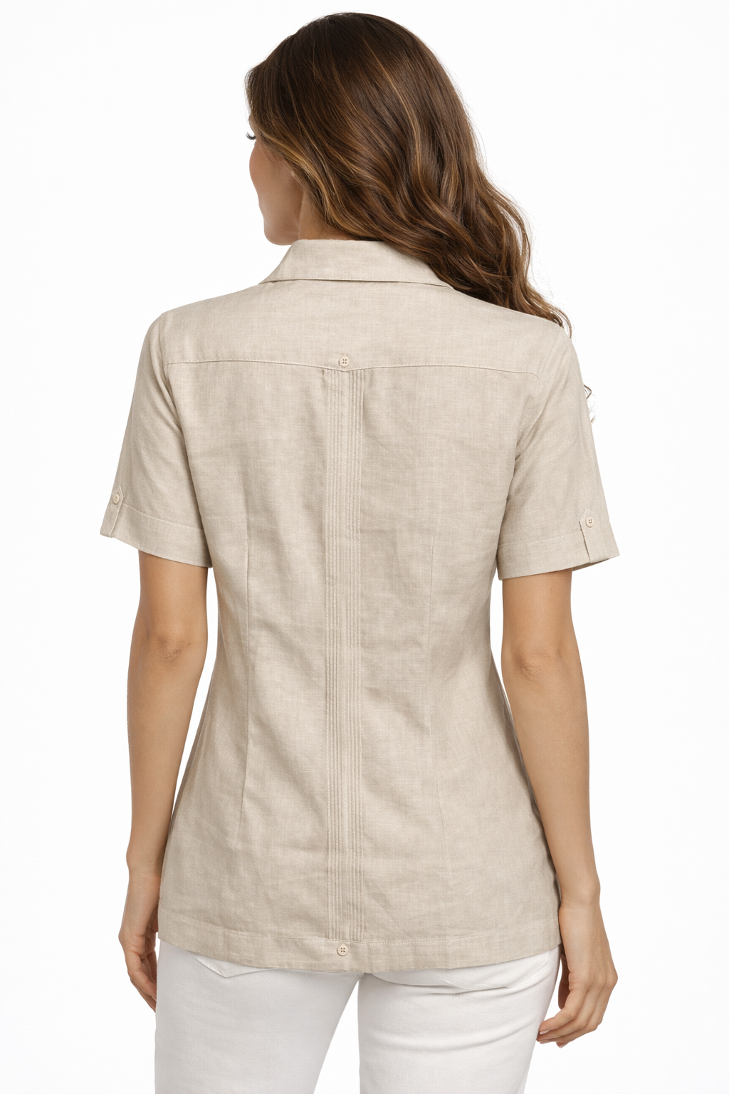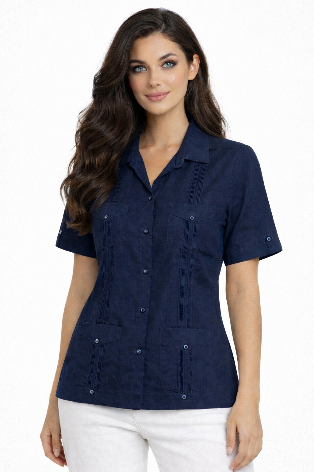 Women's 100% Linen Guayabera Shirt – Short Sleeve Button Down Tropical Blouse | Resort Wear Top | Available in 5 Colors- LLGB3008