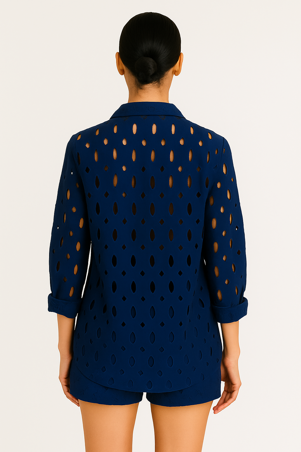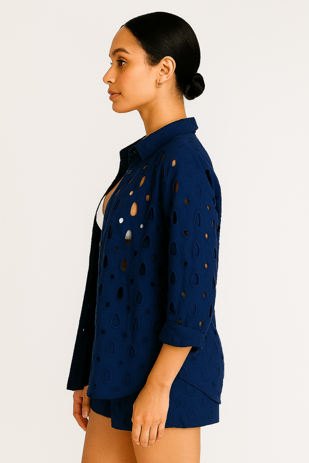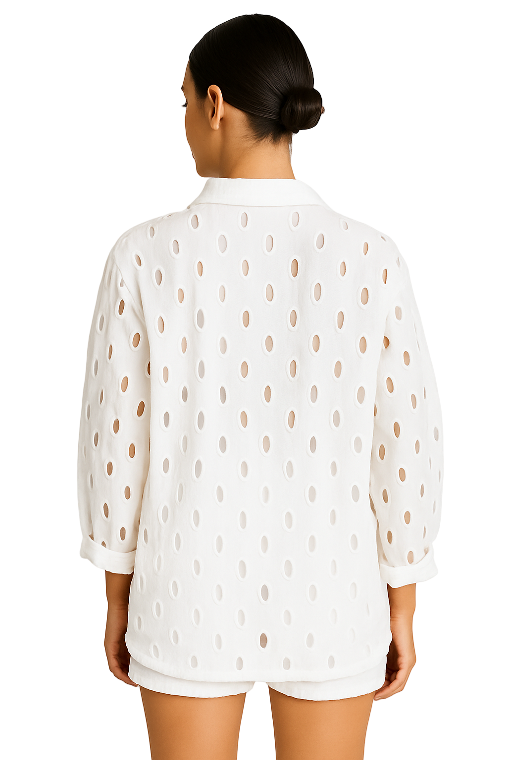 Our 2-piece embroidered eyelet set features a lightweight button-up shirt and high-waisted shorts designed for effortless style and all-day comfort. Whether you're lounging at a resort, heading to brunch, or strolling the beach, this breezy set brings the perfect balance of chic and breathable.