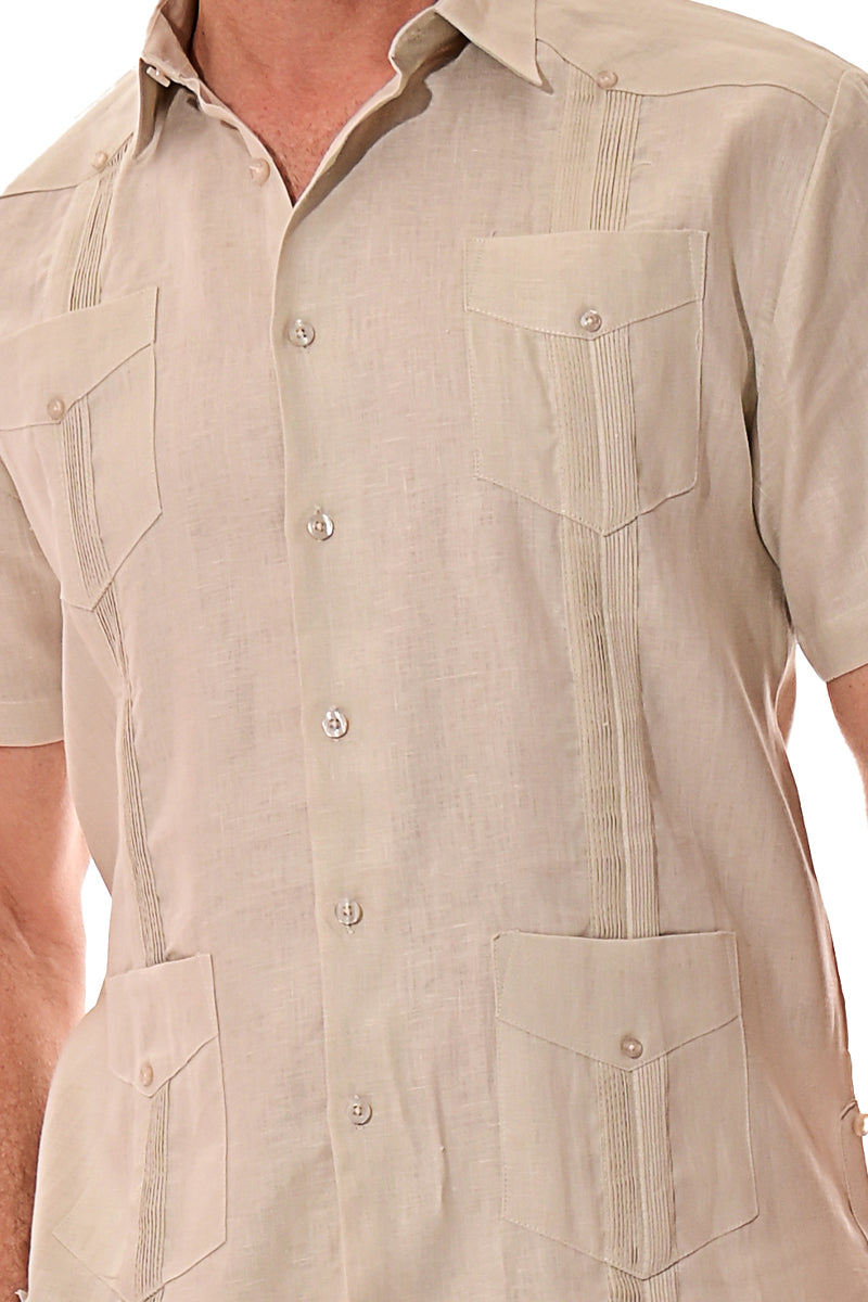 Mens 100% Soft Linen Guayabera S/S Shirt for Men- Traditional 4-Pocket in (5) Colors - LS399