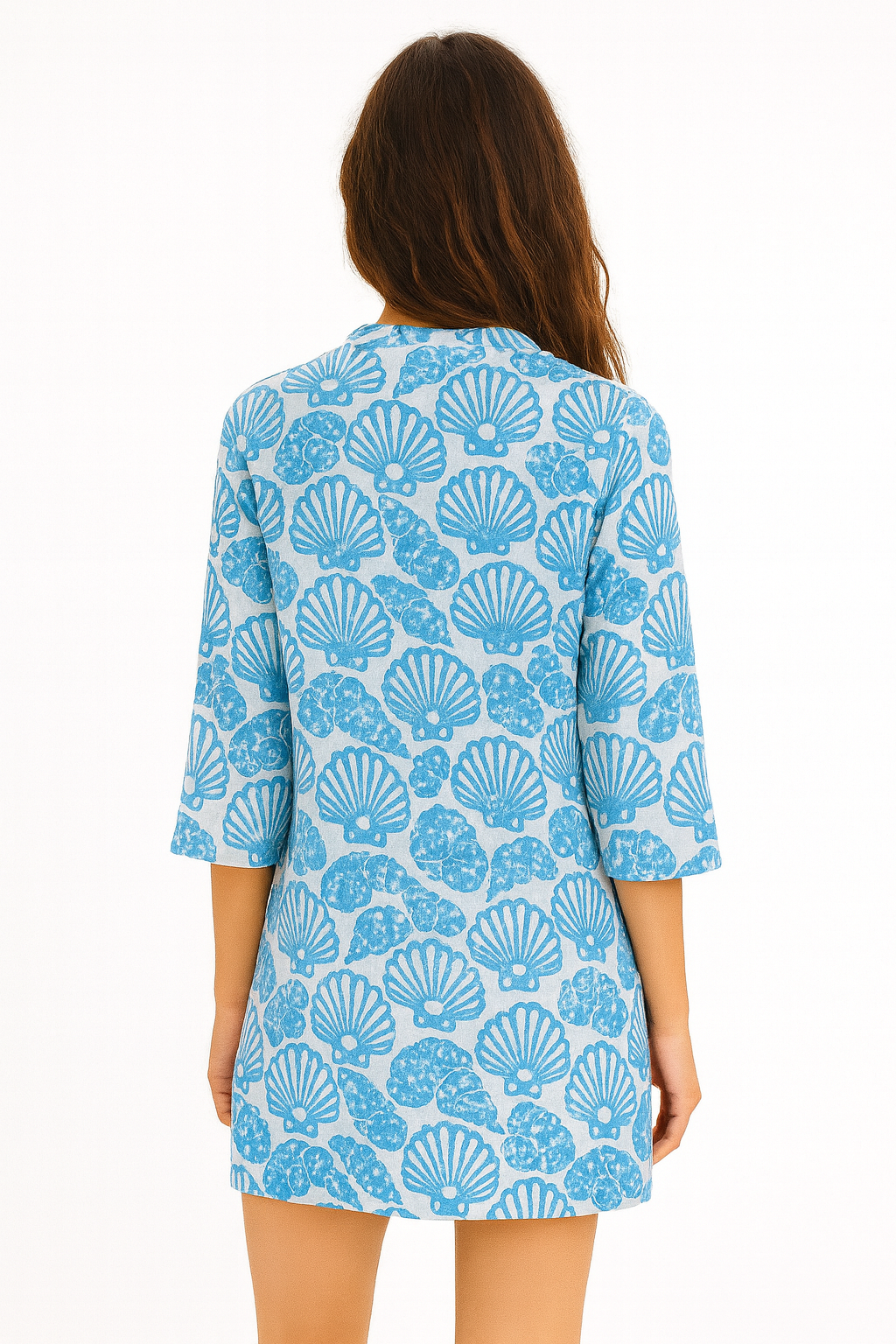 Blue Seashell Print Cotton Tunic – 100% Cotton Beach Cover-Up, Blouse or Dress - LCT3589