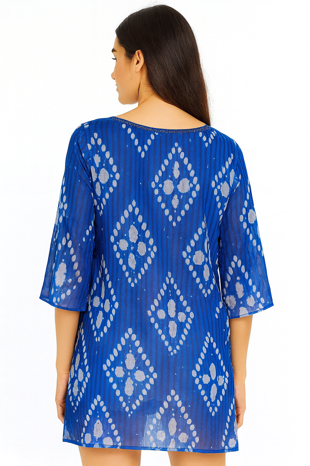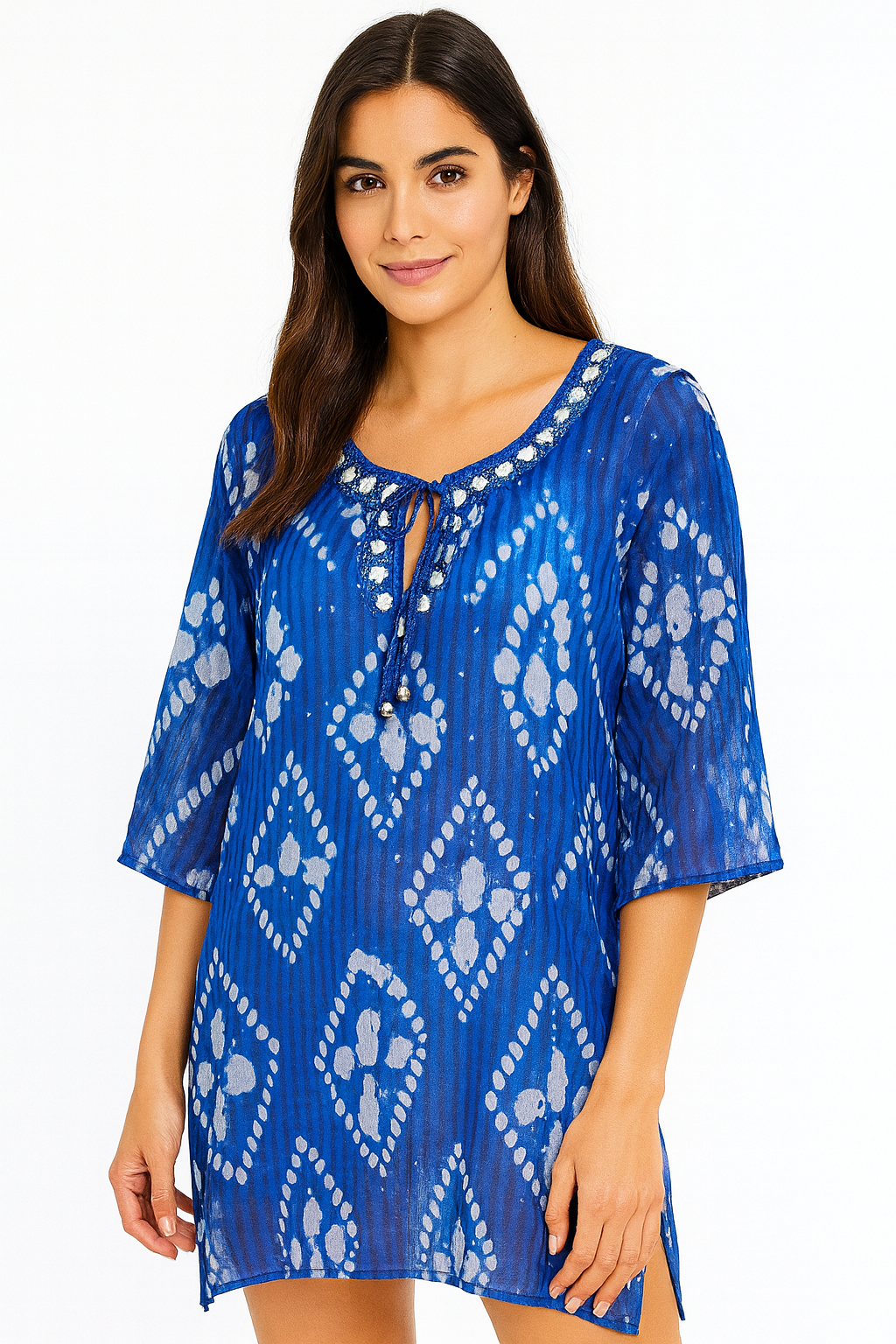 Blue Tie-Dye Cotton Tunic Cover-Up – Lightweight Resort Wear for Women