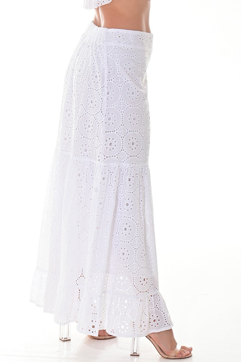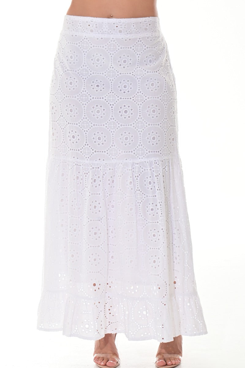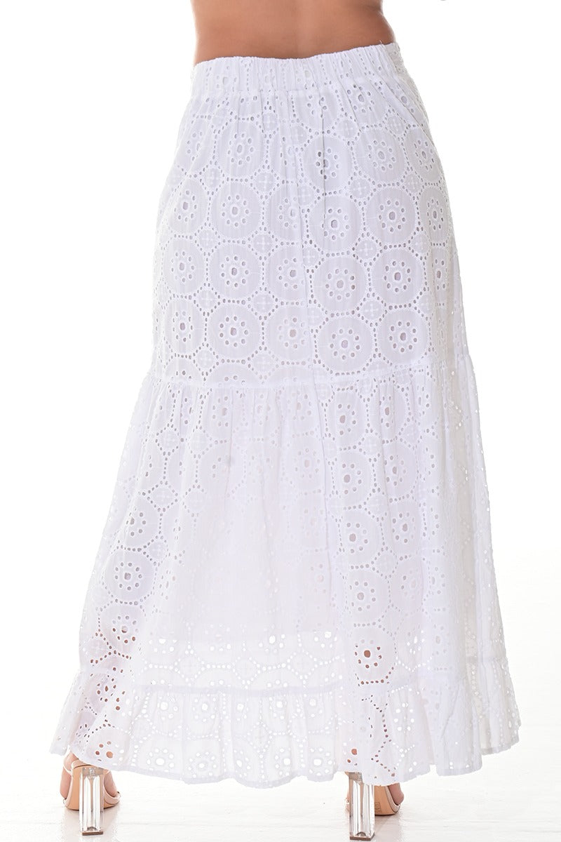 Ladies’ White Cotton Eyelet Tiered Maxi Skirt - LCK3119