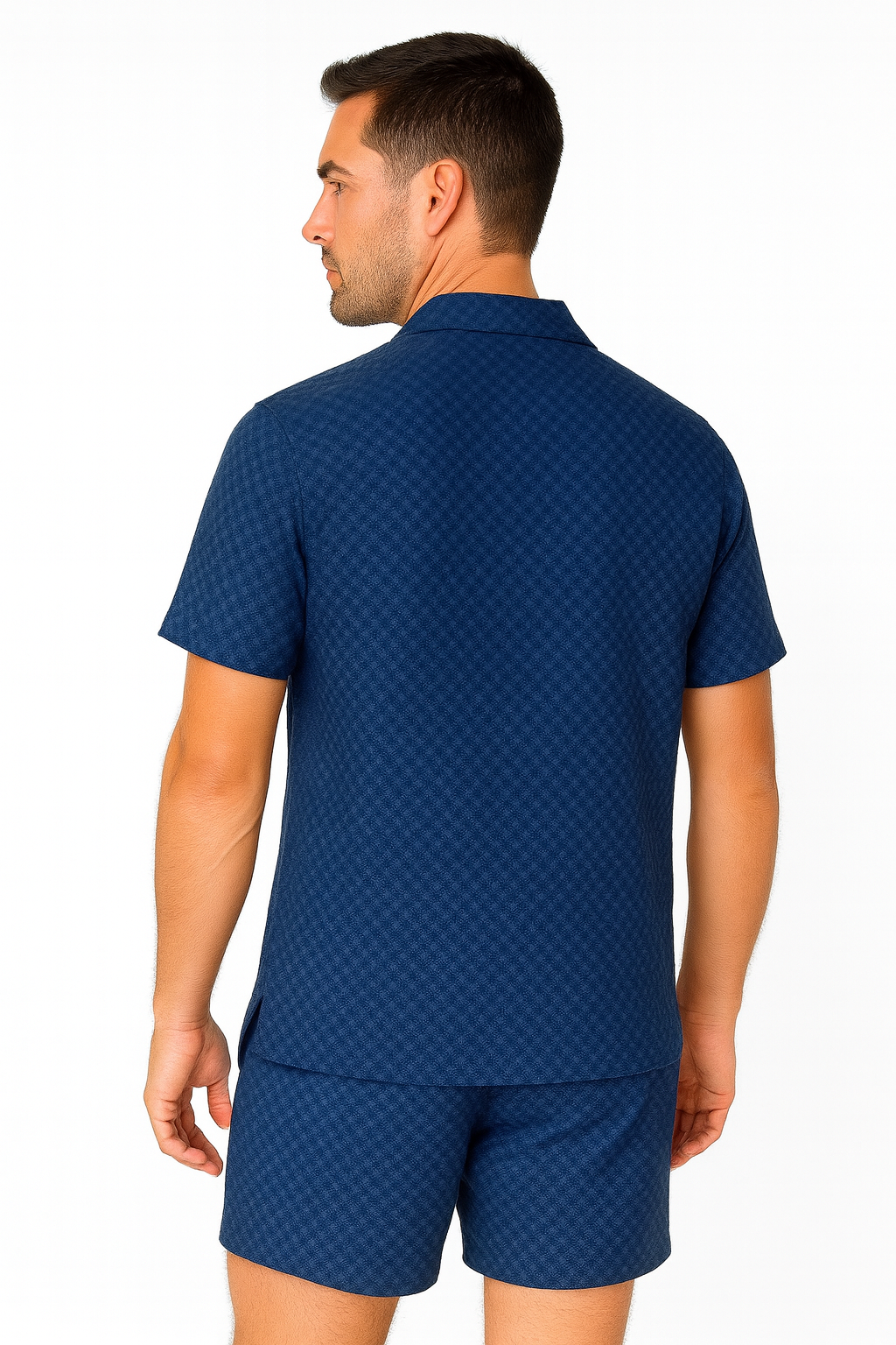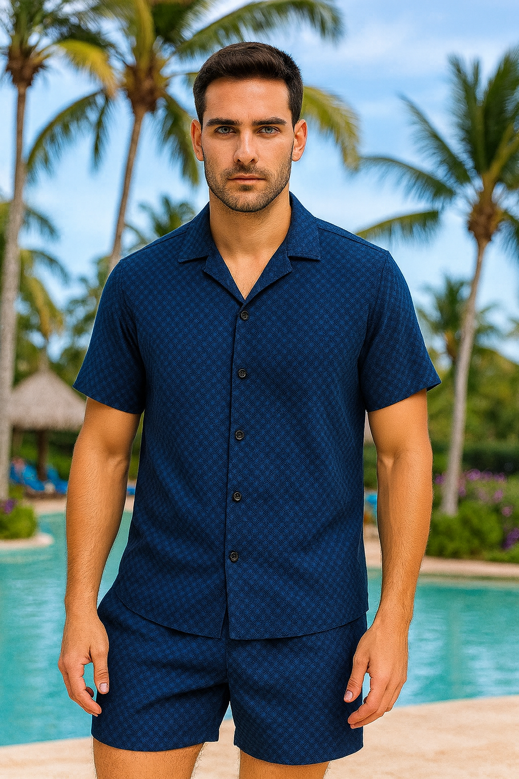 Men’s 2-Piece Textured Polyester Set – Short Sleeve Button-Up Shirt & Matching Shorts - MSH3714