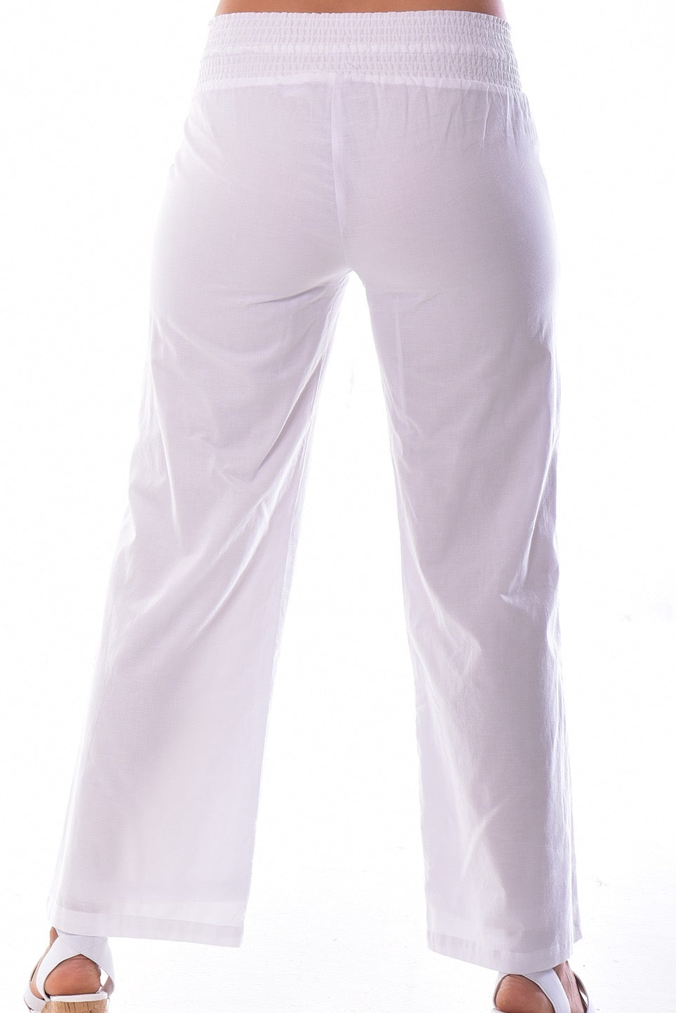 White Smocked Waist Wide-Leg Pants β Lightweight Summer Essential - LRPP1565